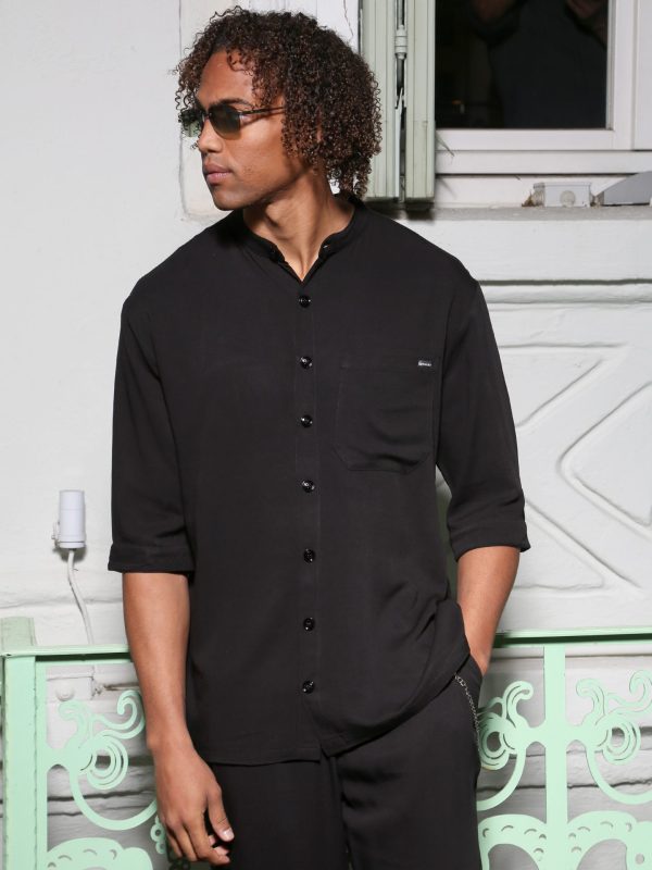 Πουκάμισο Μανίκι 3/4 Slim-fit VITO 250-956 Μαύρο