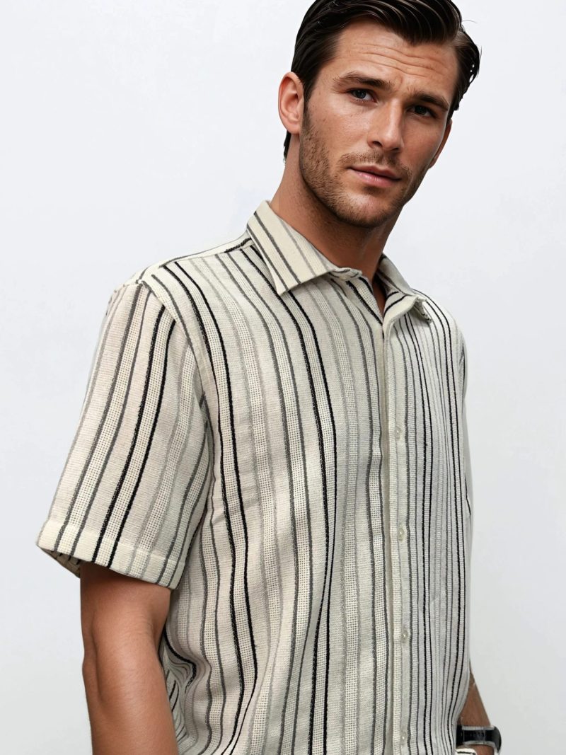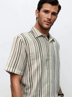 Αυτό το λινό πουκάμισο σε φαρδιά γραμμή προσφέρει την απόλυτη αίσθηση άνεσης και στυλ, ιδανικό για όλες τις ώρες της ημέρας. Κατασκευασμένο από λινό και βαμβάκι εξασφαλίζει δροσερή αίσθηση και άνεση ακόμα και τις πιο ζεστές μέρες.