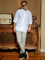 Παρουσιάζουμε την ανδρική μας πουκαμίσα Kody με χαλαρή εφαρμογή, σχεδιασμένη για απόλυτη άνεση και στυλ. Αυτό η ελαφριά πουκαμίσα διαθέτει γιακά Μάο και είναι φτιαγμένη από υψηλής ποιότητας ύφασμα, εξασφαλίζοντας εξαιρετική εφαρμογή και ανθεκτικότητα. Ιδανική για την καλοκαιρινή σεζόν, σχεδιάστηκε με μανίκια 3/4 μήκους, προσθέτοντας μια πινελιά κομψότητας στην εμφάνισή σας.