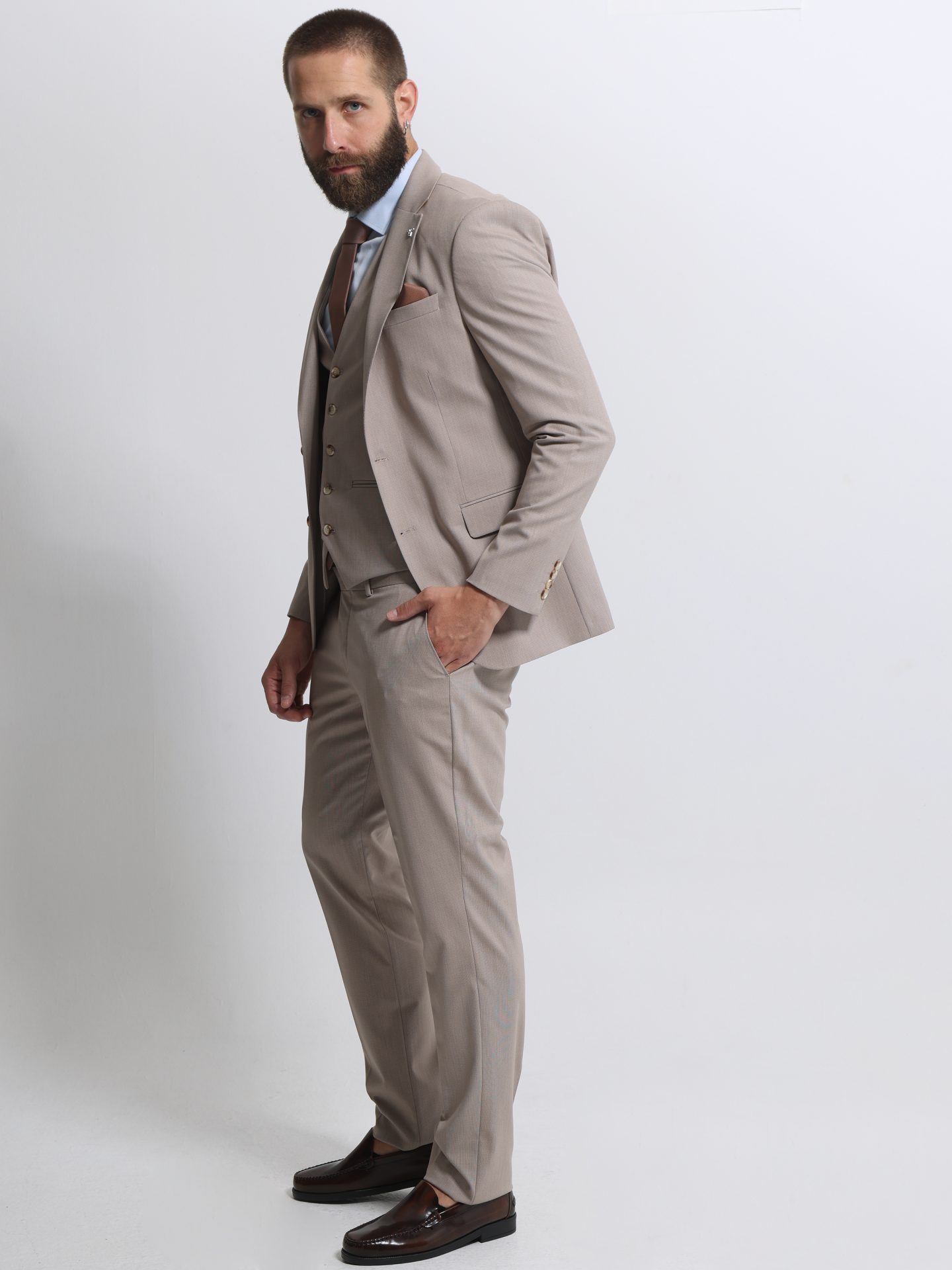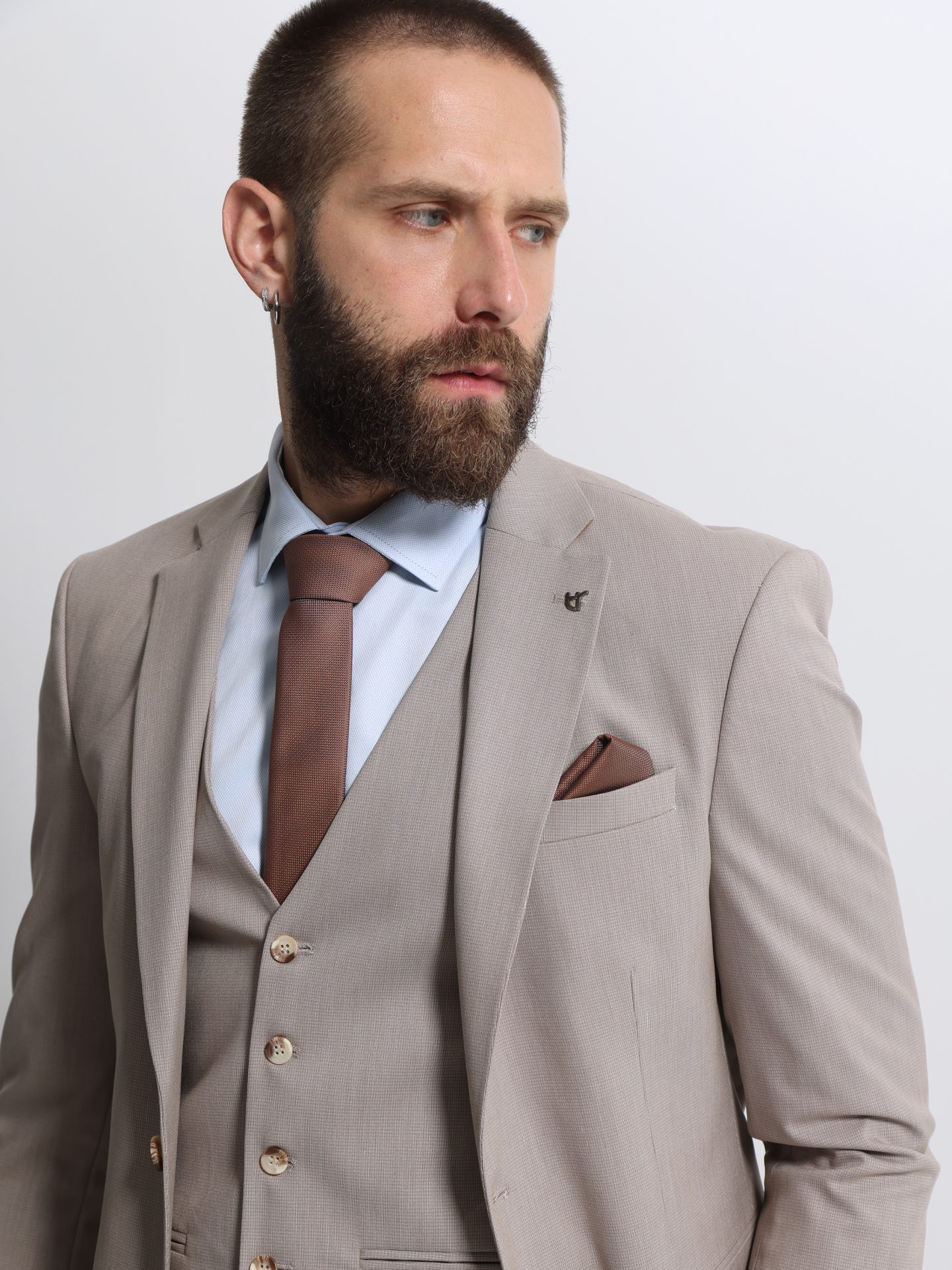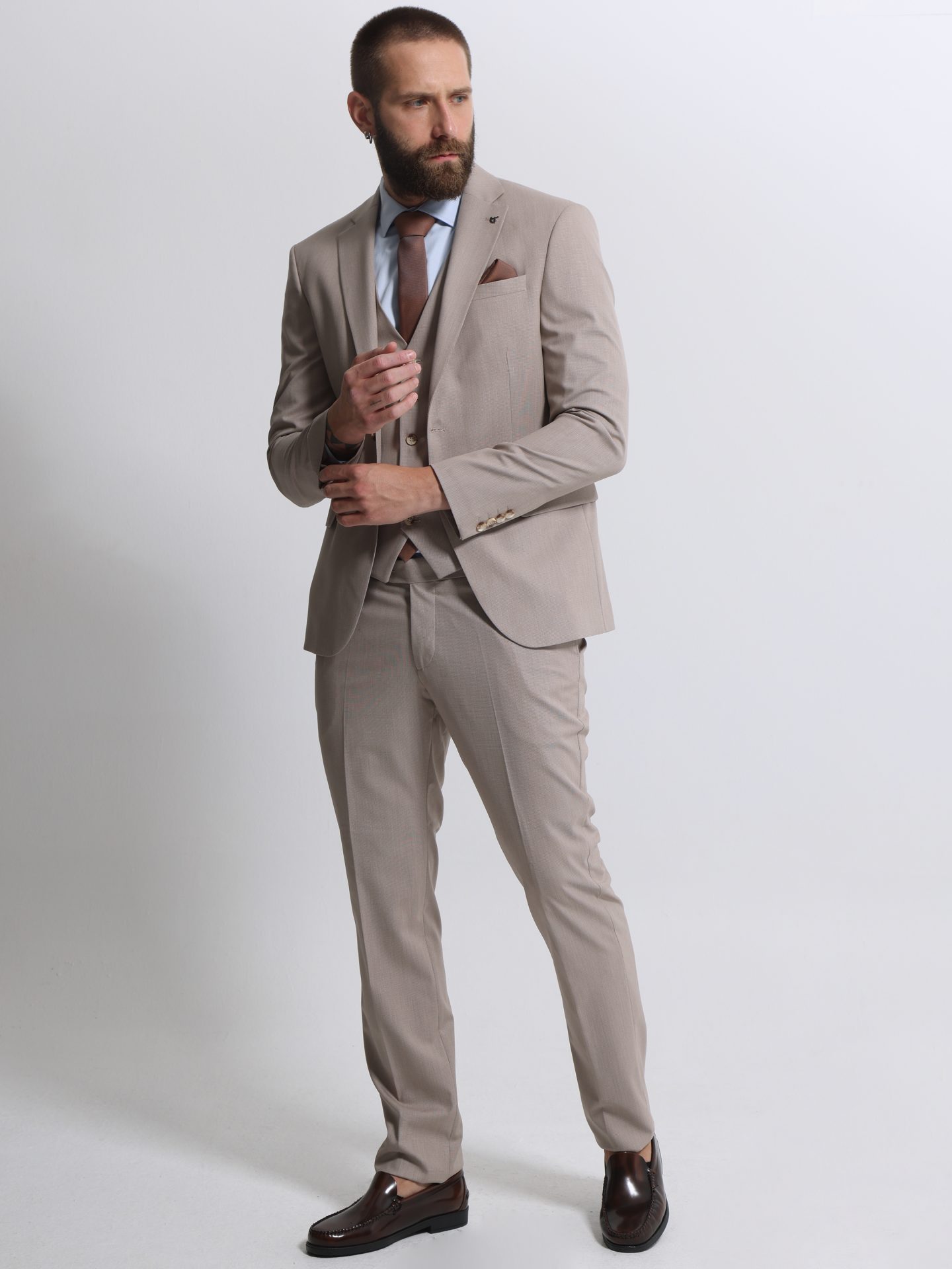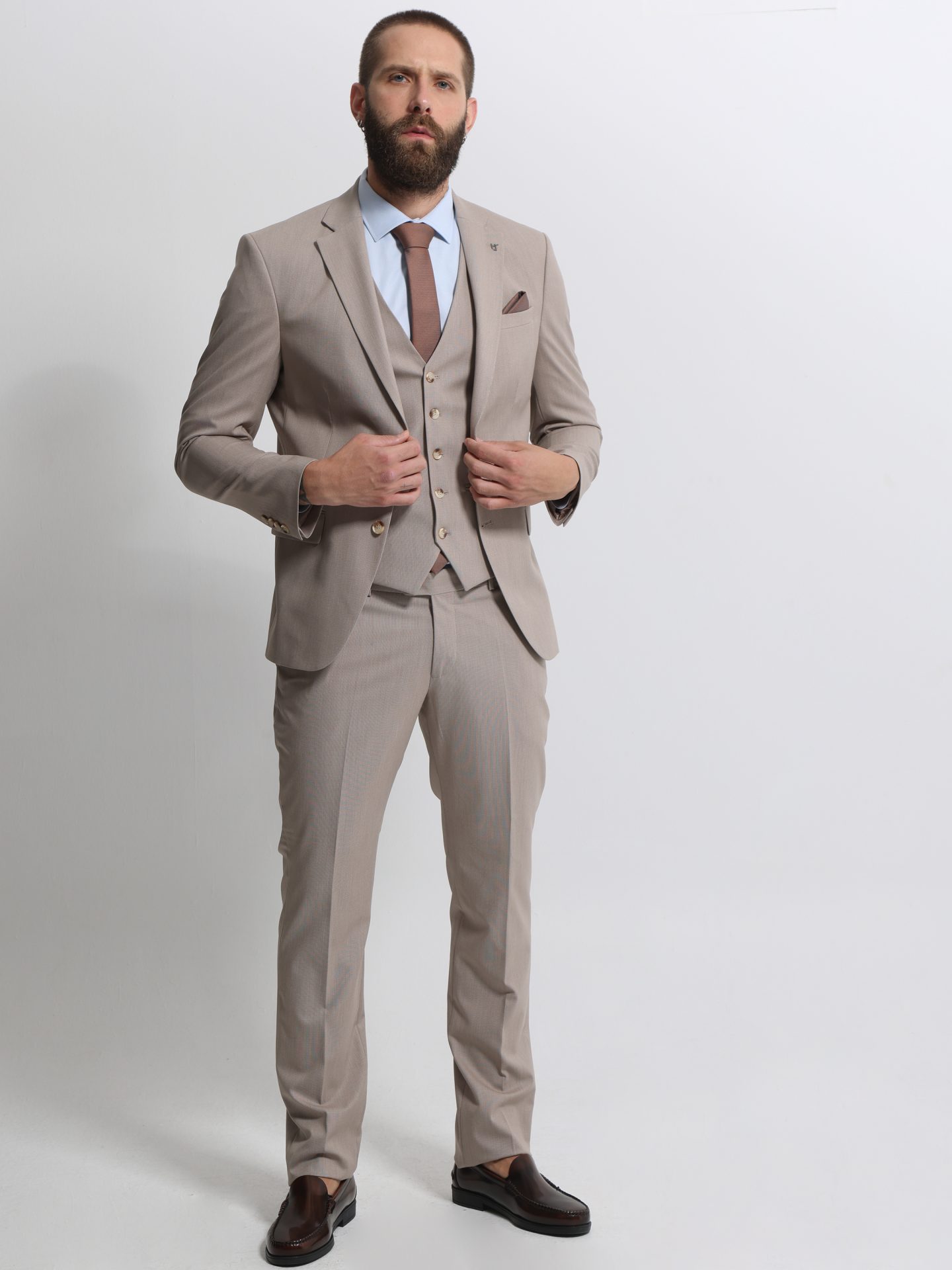 Ανδρικό Κοστούμι Με Γιλέκο MARLO 2034 Μπεζ