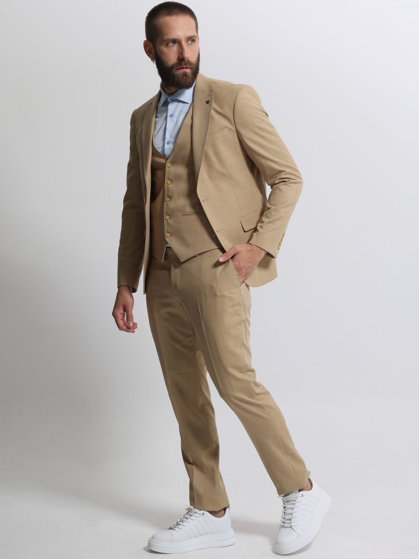Ανδρικό Κοστούμι Με Γιλέκο SERGIO 2035 Μπεζ
