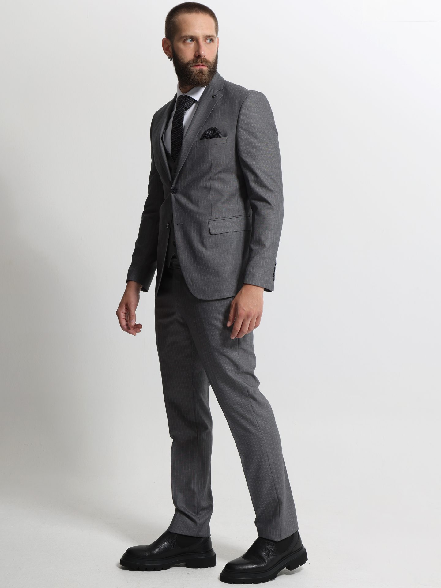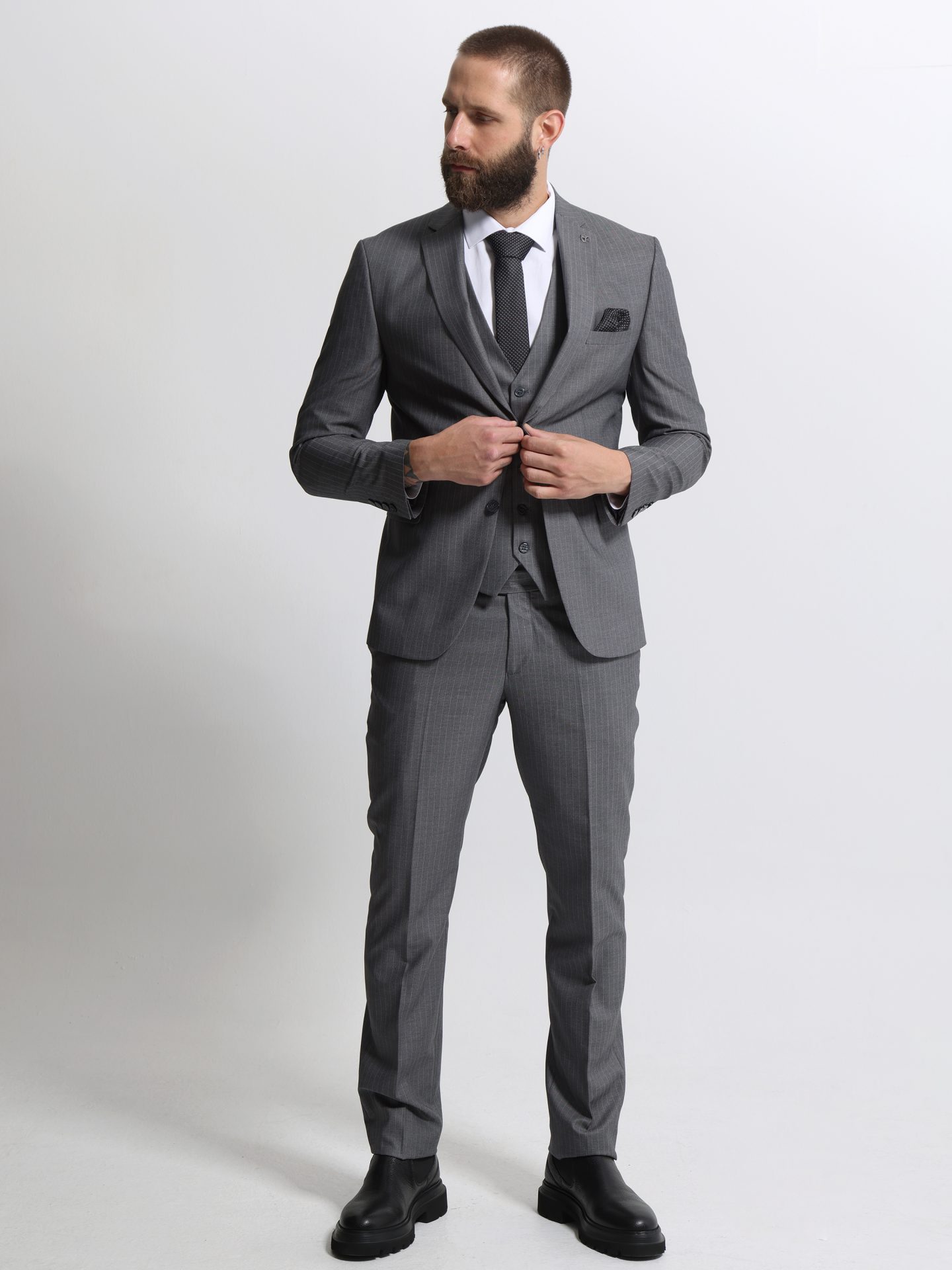 Ανδρικό Ριγέ Κοστούμι Με Γιλέκο ANTONIO 2027 Grey
