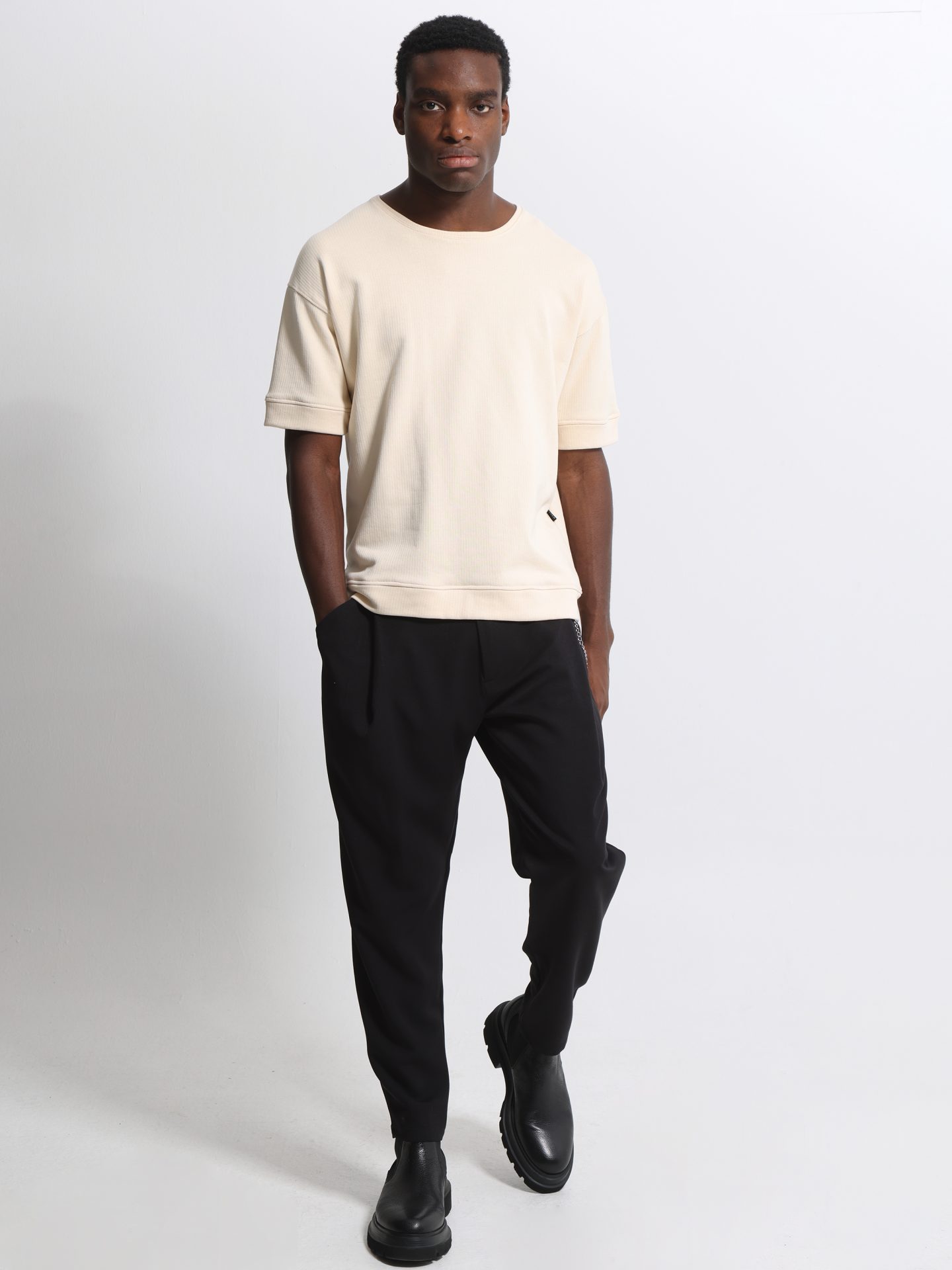 Το κοντομάνικο φούτερ της MAKAN COLLECTION επαναπροσδιορίζει το casual streetwear με έναν πιο σύγχρονο και χαλαρό χαρακτήρα. Με ιδιαίτερη υφή στο ύφασμα, φαρδιά γραμμή και ριμπ λεπτομέρειες σε λαιμόκοψη και μανίκια, αποτελεί ιδανική βάση για layered looks ή αυτόνομο statement κομμάτι για κάθε εποχή. Η oversized αισθητική του προσδίδει ένα ανεπιτήδευτο coolness, τέλειο για city εμφανίσεις με προσωπικότητα.