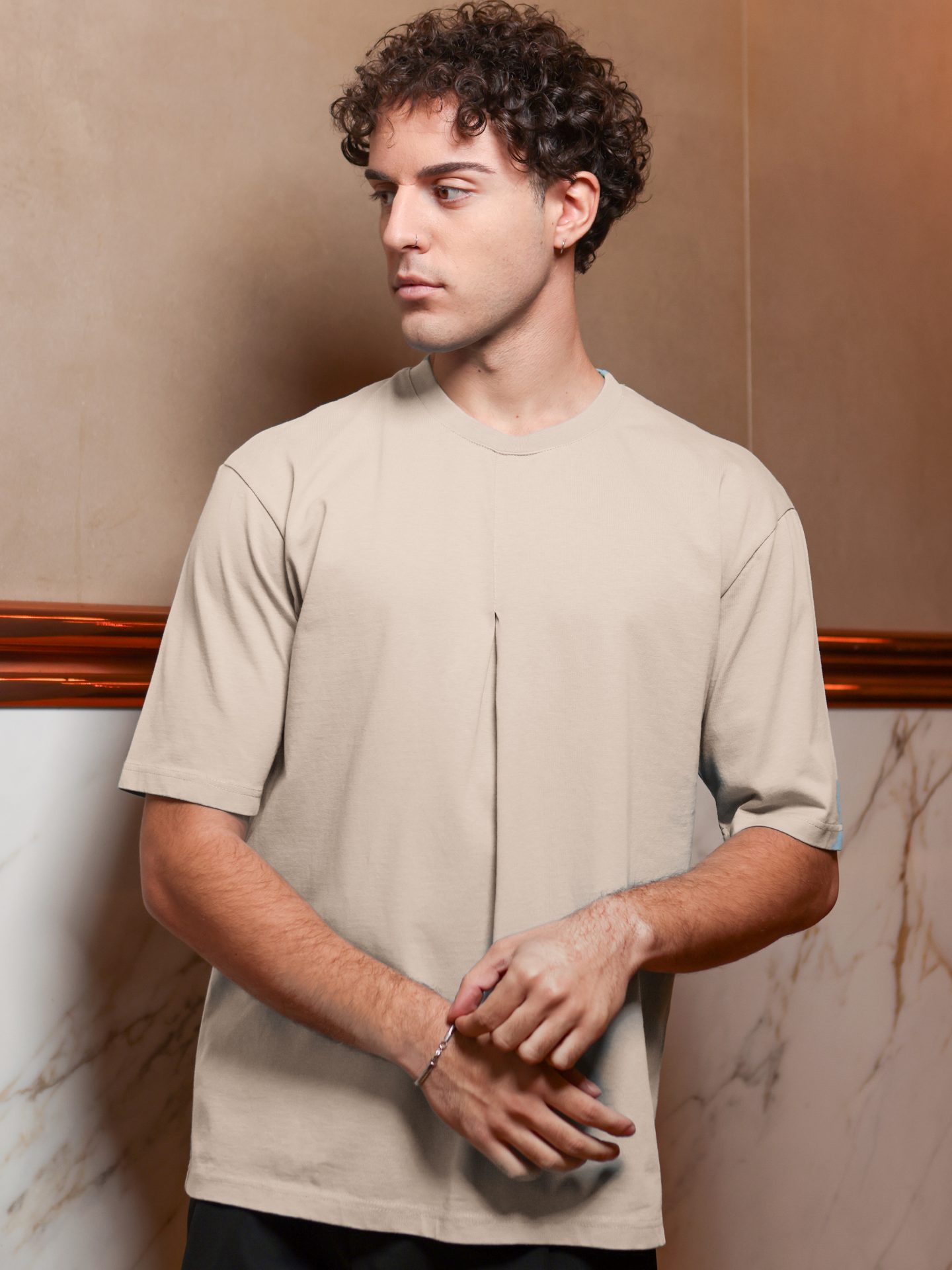 Απογείωσε το καθημερινό σου στυλ με αυτό το μοναδικό ανδρικό μπλουζάκι που ξεχωρίζει για το ιδιαίτερο σχέδιο μπροστά! Με μια κομψή πιέτα στο κέντρο, αυτό το μπλουζάκι προσθέτει μια εκλεπτυσμένη λεπτομέρεια που το κάνει να διαφέρει από τα συνηθισμένα.