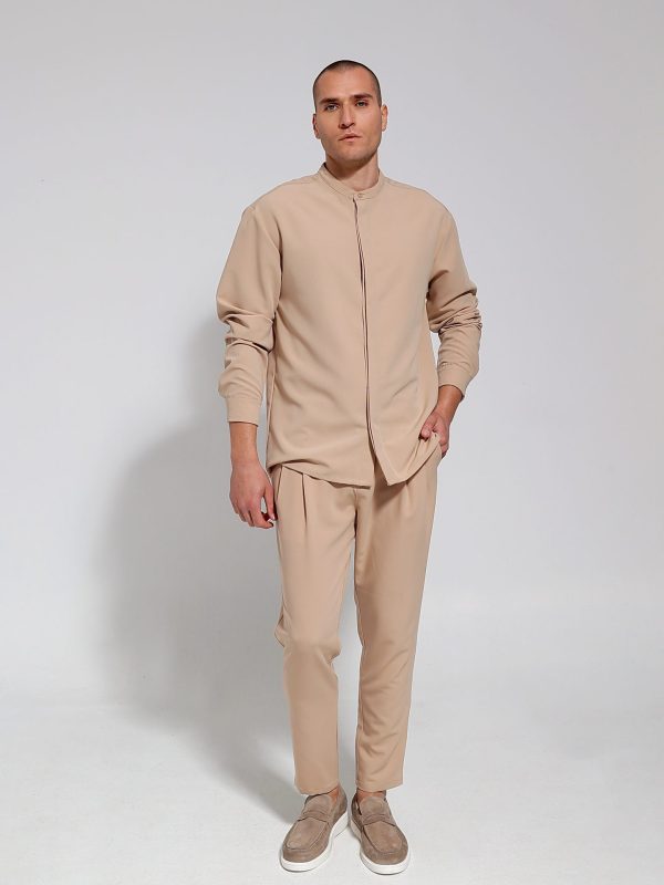 Πουκαμίσα Με Μάο Γιακά Και Μανίκι 3/4 Kody 33-7405 Μπεζ Slim-fit