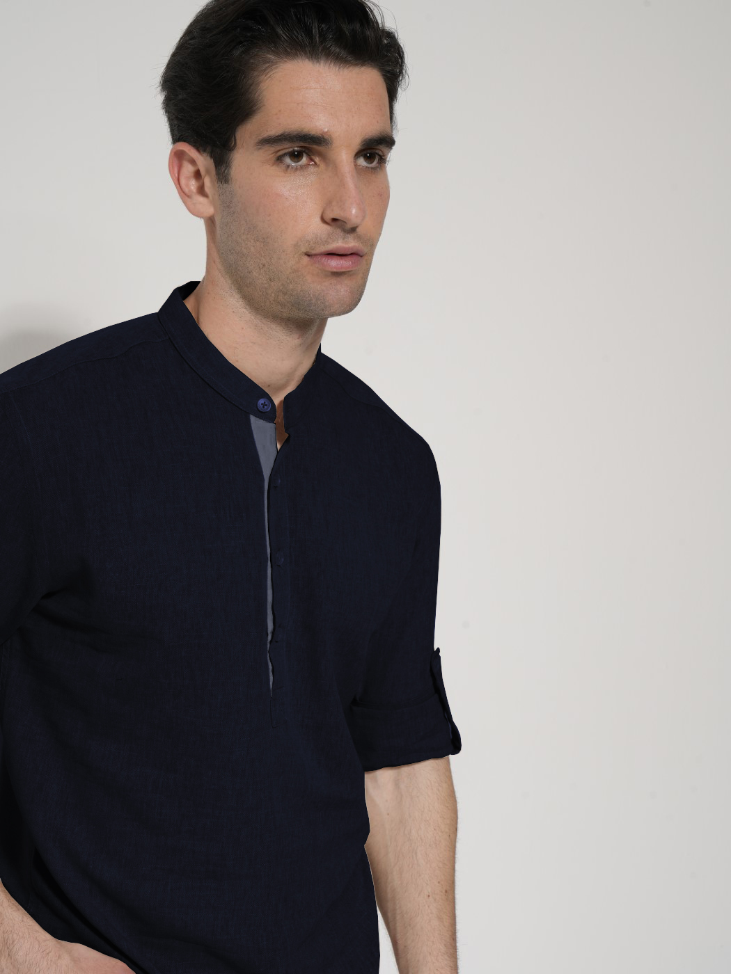 Ανδρικό Λινό Πουκάμισο Slim 33-6116 Μπλε