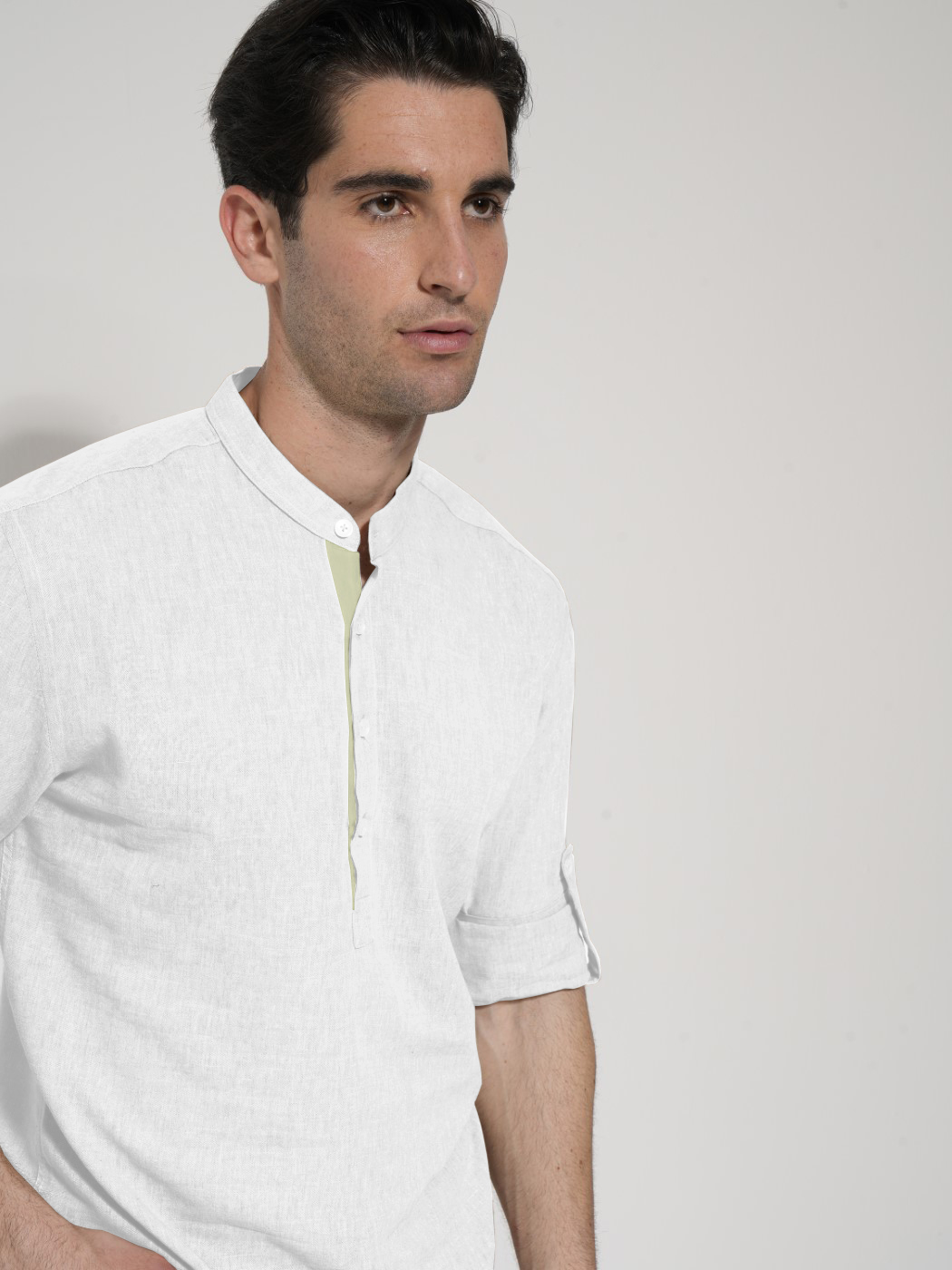 Ανδρικό Λινό Πουκάμισο Slim 33-6116 Λευκό