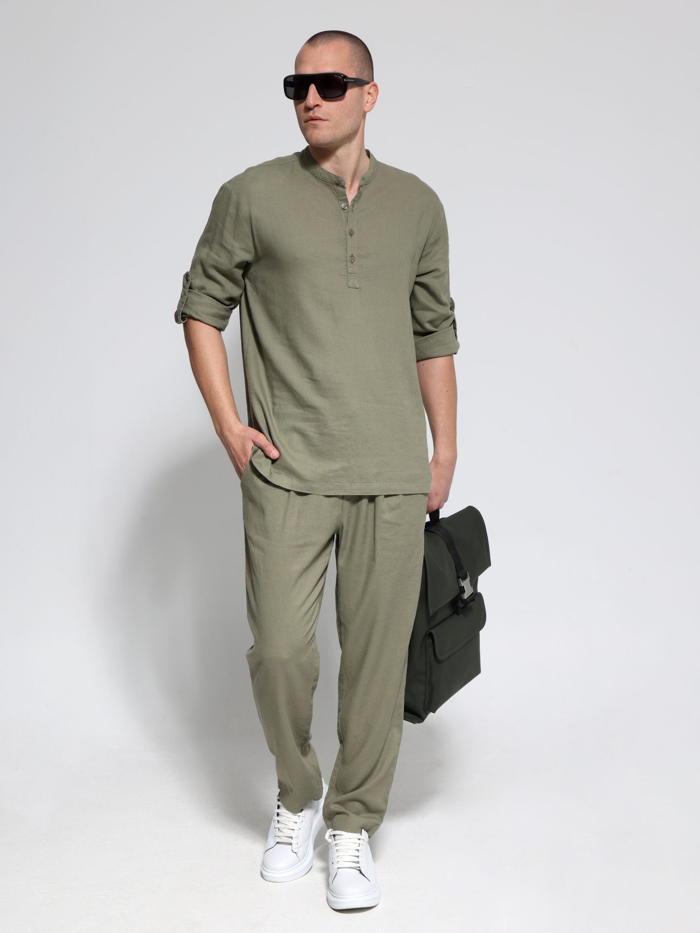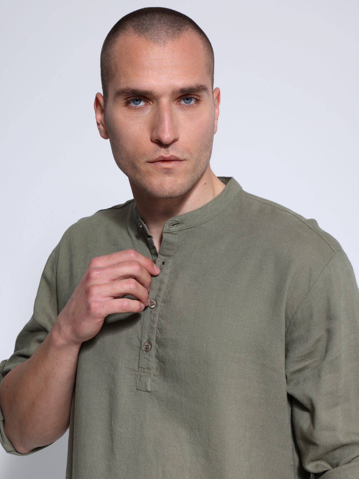Αυτή η λινή ανδρική πουκαμίσα συνδυάζει την κομψότητα με την άνεση, ιδανική για κάθε περίσταση. Ο μάο γιακάς προσθέτει μια μοντέρνα πινελιά, κάνοντάς την κατάλληλη για casual ή πιο επίσημες εμφανίσεις.
