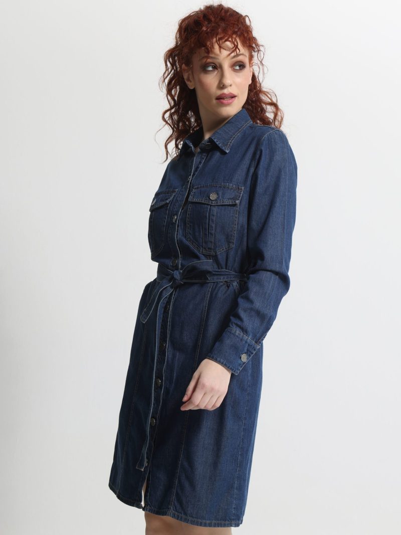 Αρχική σελίδα E-Shop Γυναίκα Jeans Γυναικεία Γυναικείο Μακρυμάνικο Jean Φόρεμα Με Ζώνη FRANCESCA 945026 Blue