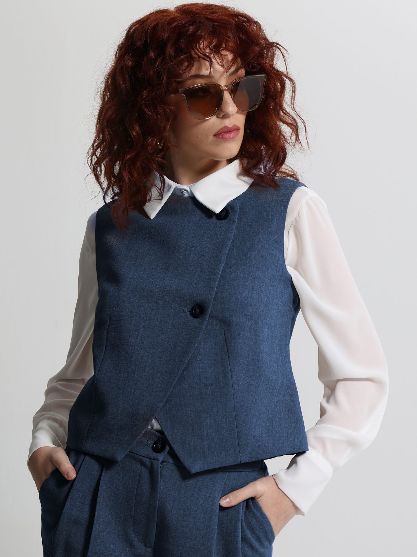 Γυναικείο Ασύμμετρο Γιλέκο με Δύο Κουμπιά GEMMA 9222 Μπλε