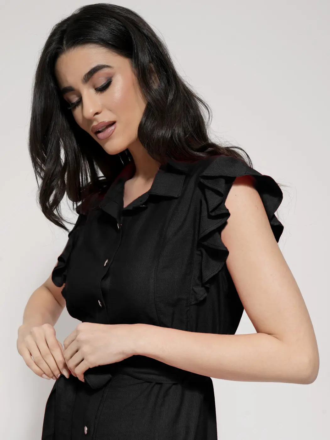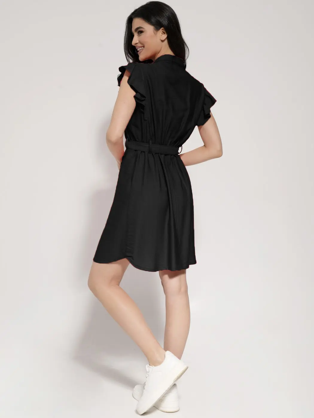 Αναβαθμίστε την καλοκαιρινή σας γκαρνταρόμπα με αυτό το φόρεμα! Iδανικό για το καλοκαίρι! Με τις τσέπες στο πλάι και τη ζώνη από το ίδιο ύφασμα, αυτό το φόρεμα είναι ευκολοφόρετο και άνετο. Κλείνει με κουμπάκια και έχει έναν όμορφο πέτο που προσθέτει στυλ.