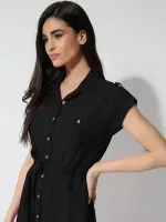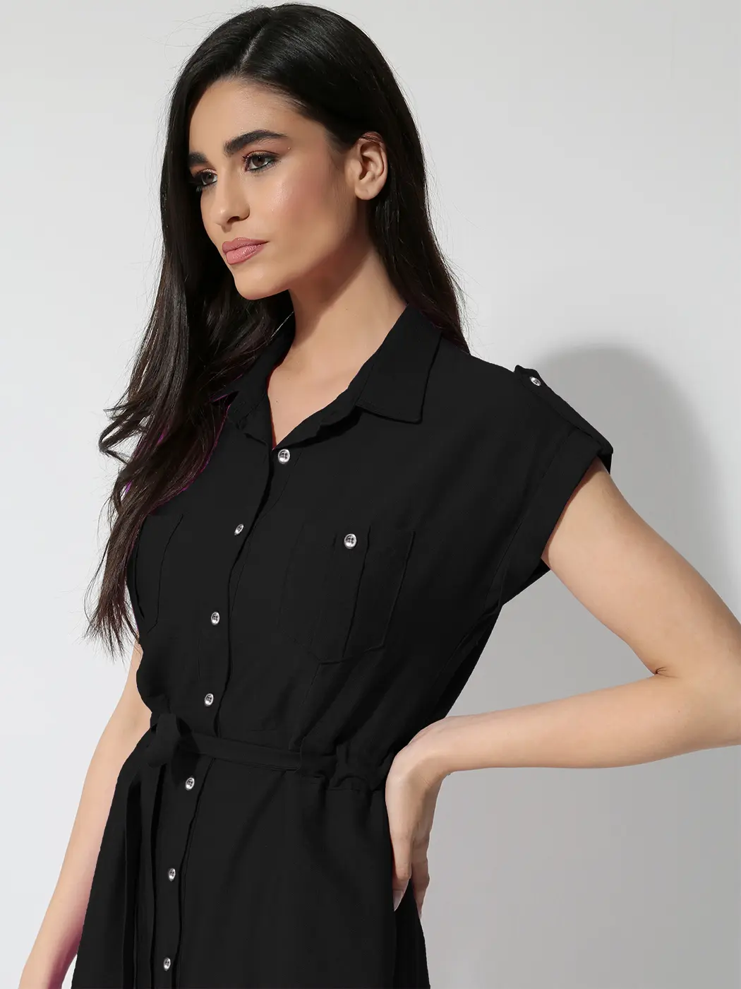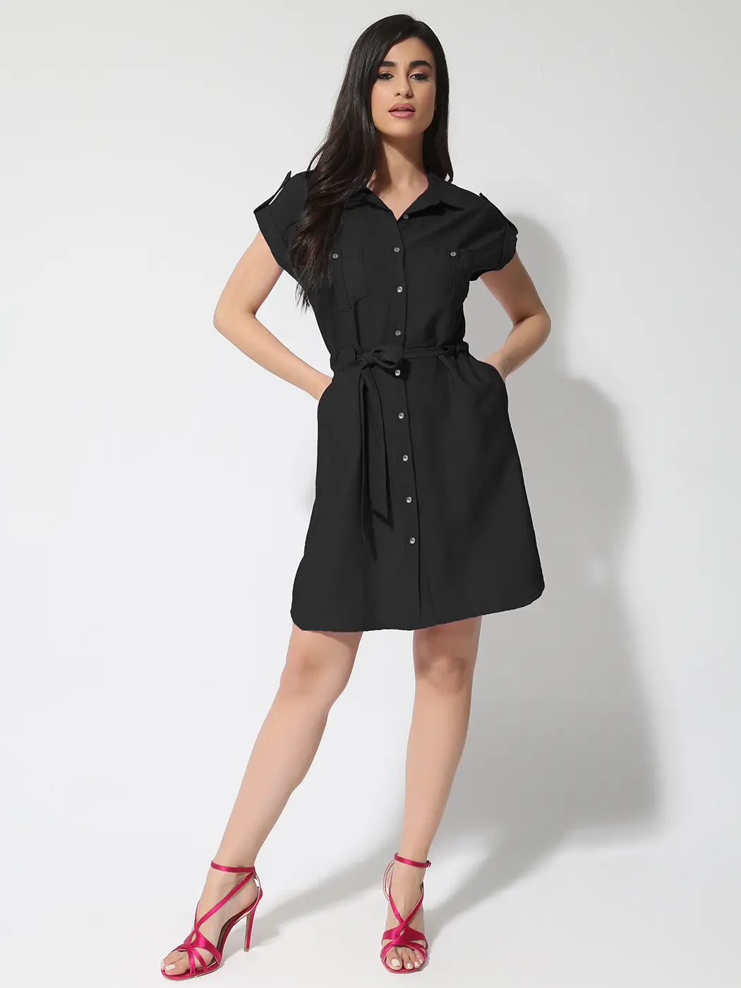 Γυναικείο Φόρεμα Με Γιακά Και Ζώνη 933083 Μαύρο