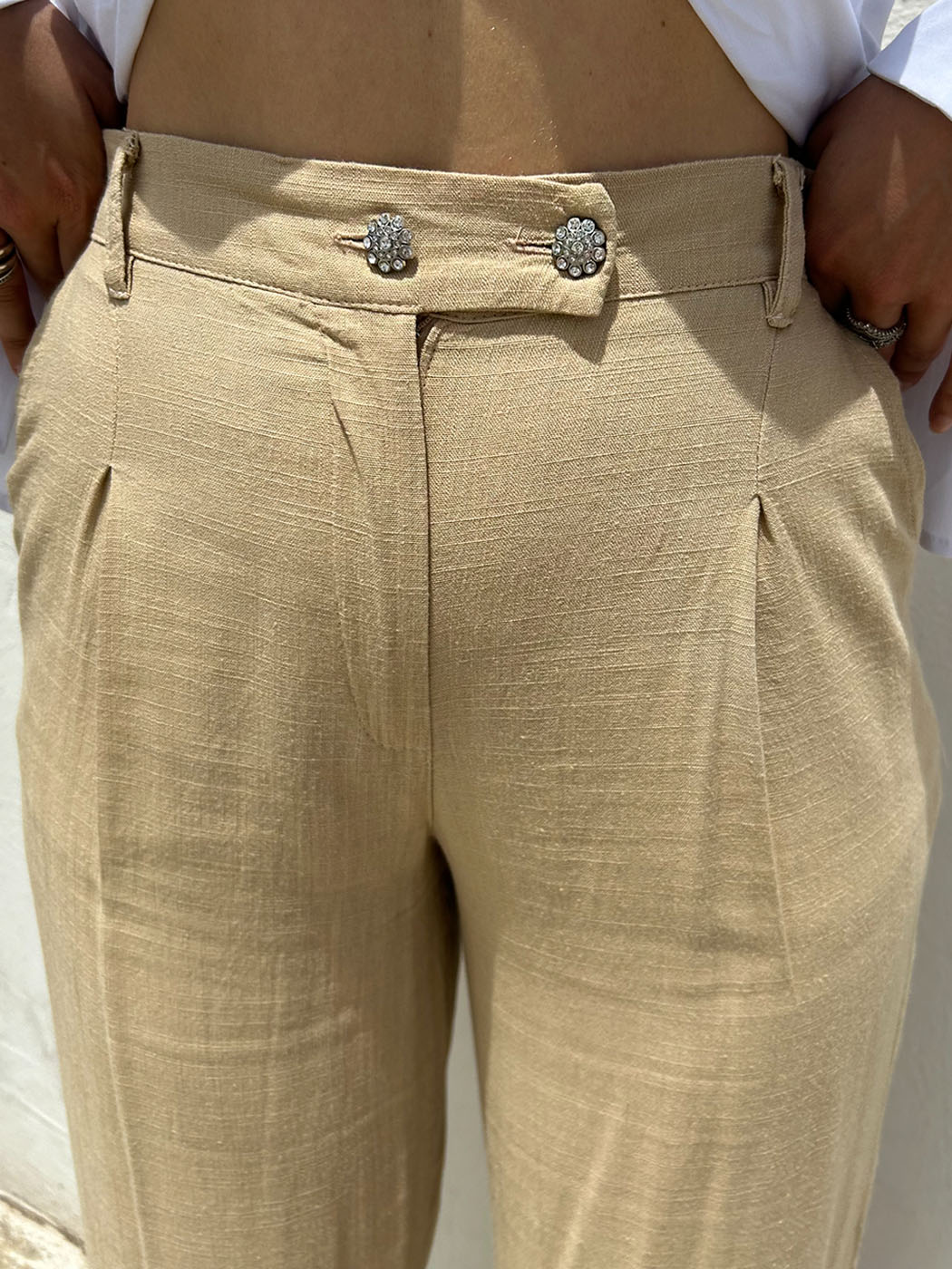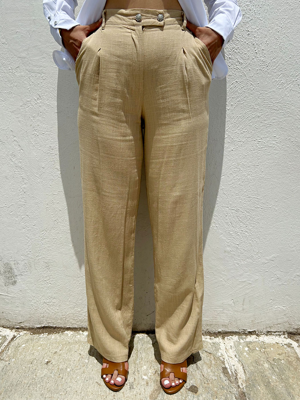 Το ψηλόμεσο κόψιμο και το ύφασμα εξαιρετικής ποιότητας που διαθέτει θα σας εκτοξεύσει στιλιστικά όλο το καλοκαίρι! Η loose γραμμή κρύβει τις ατέλειες του σώματος και δίνει την ψευδαίσθηση μιας πιο μακριάς και λεπτής σιλουέτας. Με ελαφριές πιέτες, αποτελεί ένα από τα πλέον δημοφιλή trends της φετινής σεζόν τόσο για τις casual όσο και πιο ιδιαίτερες εμφανίσεις αφού δίνει μοναδικό style και απίστευτη κομψότητα. Μπορεί να φορεθεί από το πρωί έως το βράδυ.