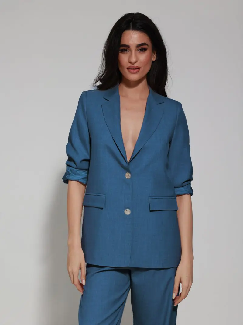 Αρχική σελίδα E-Shop Γυναικεία Προσφορές Σακάκια - Πανωφόρια Προσφορά Γυναικείο Κλασικό Σακάκι Blazer Silvia 8861 Μπλε